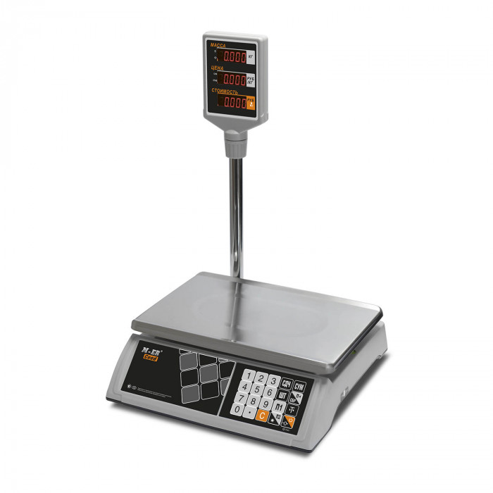 Дисплей весов выполнен на основе технологии LED и имеет 16 разрядов индикации, что обеспечивает четкость и удобочитаемость информации даже при слабом освещении. Наличие стойки для дисплея позволяет разместить его на уровне глаз оператора и покупателей, что повышает комфорт использования и способствует прозрачности торгового процесса. Весы измеряют массу в килограммах, что является стандартом для большинства торговых операций и удобно для пользователей.